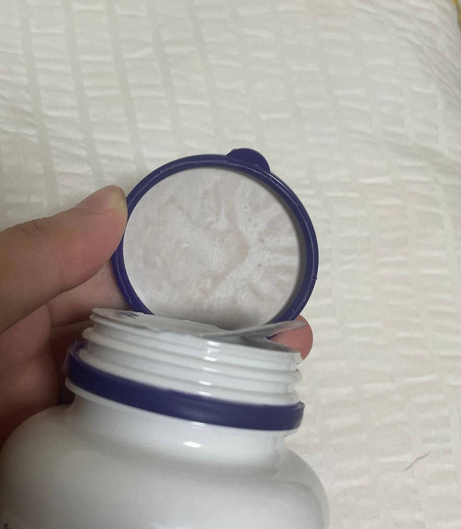 저번엔 안그랬는데 요번에 해외직구로 시킨 영양제들 네개 모두 뚜껑 속 실링지?가 이런식으로 지저분한데 이유가뭔가요?