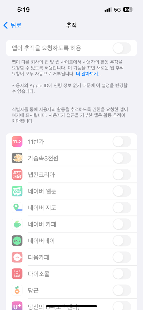 추적허용이 안돼서 어플들이 다 제 역할을 못합니다.