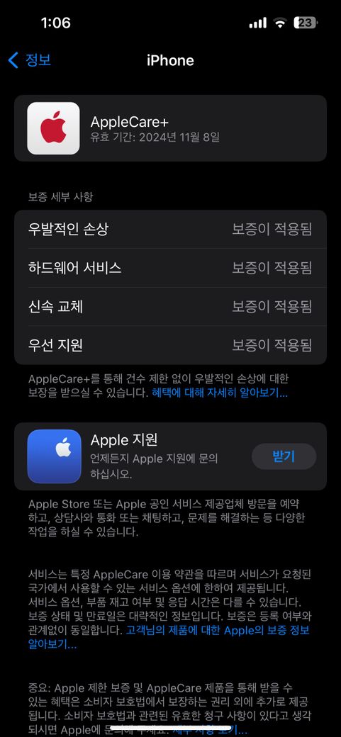 애플케어플러스 가입되어있습니다