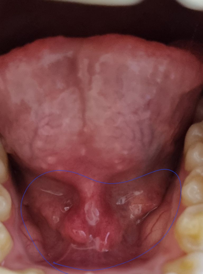 2주 전에 여행을 다녀와서 감기를 심하게 걸렸습니다. 약을 계속 복용하고 이젠 약을 다 먹었고, 증상도 호전되어 약을 복용하지 않게 되었는데, 2주째 꾸준히 목이 아픕니다. 지금 증상으로는 가래가 약간 있고 침 삼킬 때 통증이 있고, 목이 쉬기도 하고, 목 통증도 있습니다. 그런데 오늘 갑자기 혀 밑이 아프면서 첨부된 사진과 같이 파란색 원에 표시된 쪽에 이물감이 느껴지기 시작하면서 아프더군요. 그래서 혀를 쭉 빼봤더니 안쪽까지 아팠습니다. 혹시 이 목아픔이 목이 아픈 게 아니라 혀가 아파서 아팠던 걸까요? 요근래 목이 자주 쉬었고, 목 아픈 게 호전될 기색이 안 보이는데 혹시 큰 병일 수도 있을까요... 암 같은...