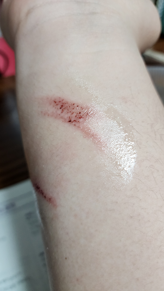 당장은 심한 화상이 아닐 것이라 보이나 시간이 지나며 수포가 잡히는지, 패인 병변은 없는지 관찰해보아야 하겠습니다. 연고를 꾸준히 발라주시고 상처가 건조해지지 않게 밴드로 보호해주시기 바랍니다.