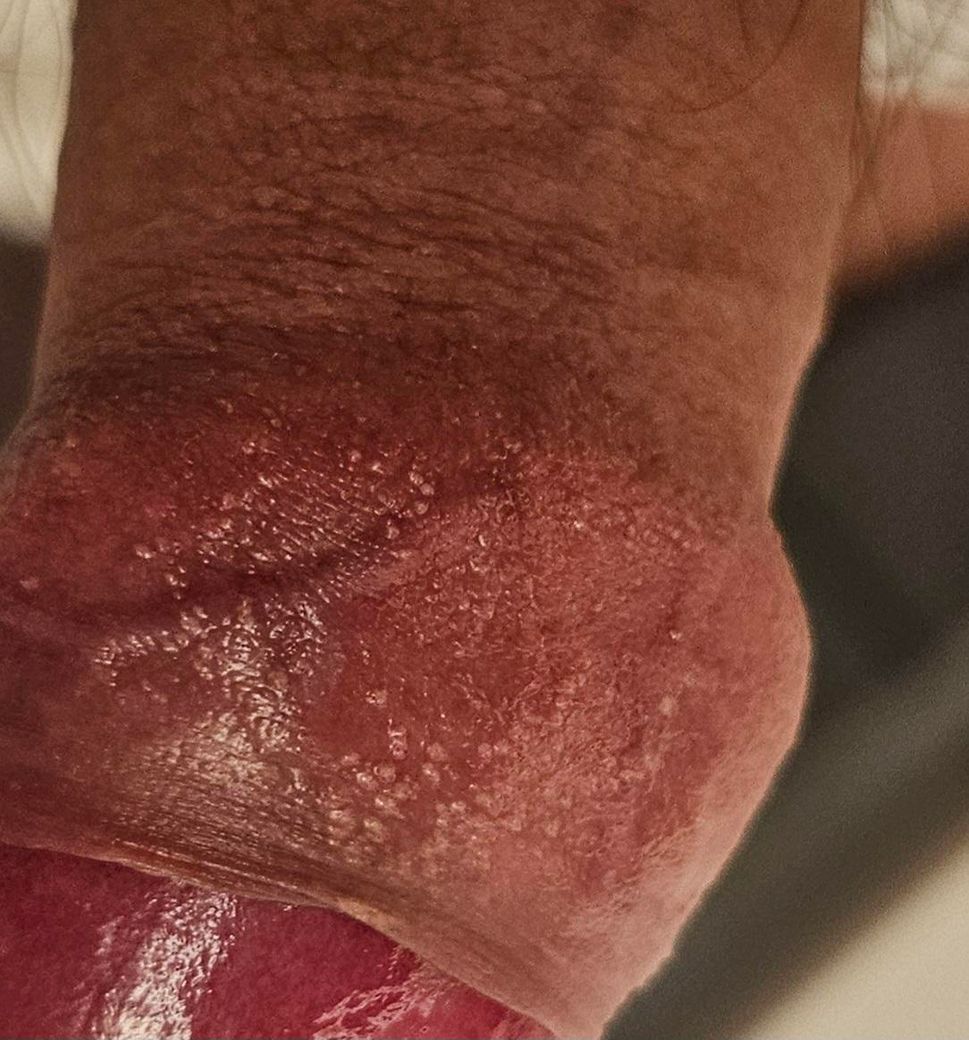 성기주변 표피에 사진처럼 물집이 생기는데 성병인가요? 병원에 가서 검사를 받아봐야하나요? 콘돔끼고 성관계를해도 성병에걸릴수있나요?
