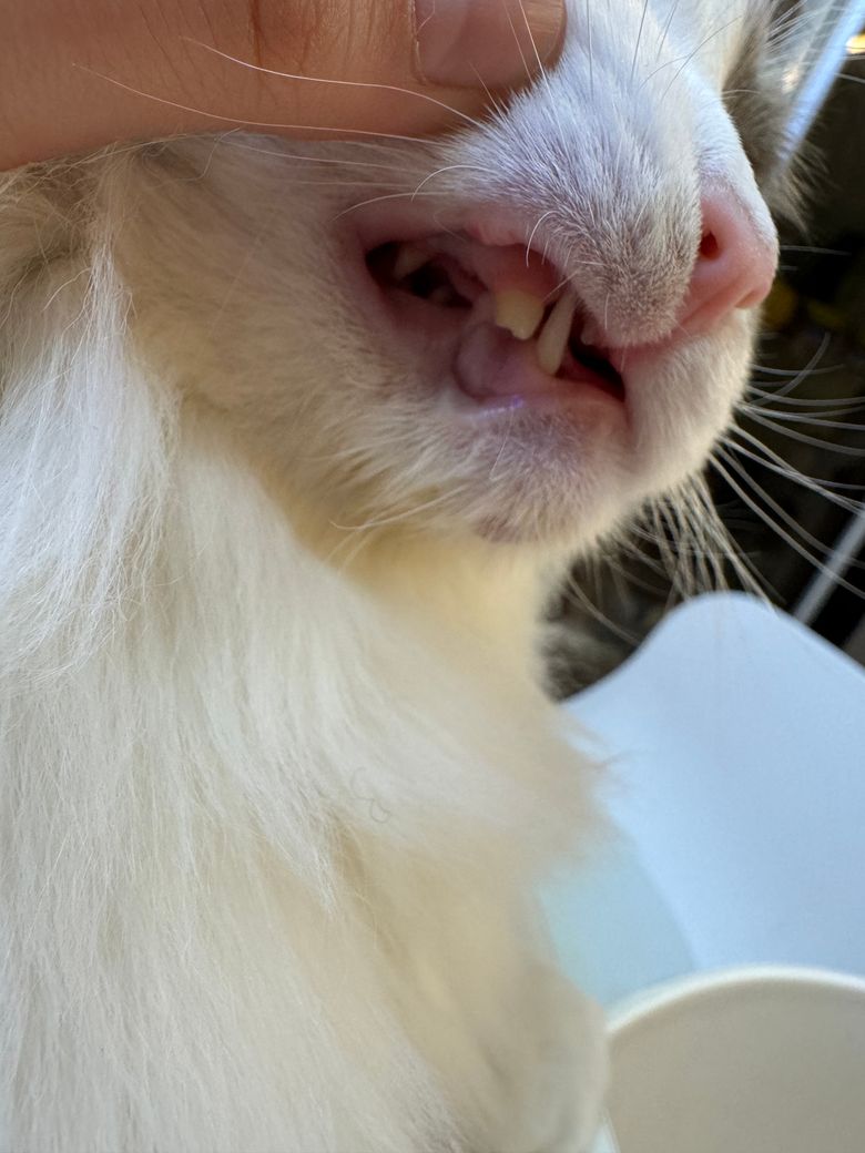 일주일 전 가정집에서 분양 받아온 고양이입니다. 오늘 첫 양치를 시키는 도중 언제부터인지 모르겠지만 부러진 송곳니를 발견했습니다. 딱히 아픈 티도 안 내고 건사료와 간식도 잘만 먹는데 갑자기 이래서 엄청 놀랐어요. 동물병원을 가보긴 할 생각인데 금전적으로 여유가 있지는 않아서 치료비용이 매우 걱정이네요ㅜㅜ 사진상으로 봤을 때 잇몸과 치아 등의 상태가 어때 보니나요? 또 치료비용은 어느정도