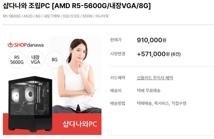 컴퓨존같은 사이트에서 완본체 100만원대로 비슷한 사양의 그래픽카드가 있는 모델로 찾아보시는 것을 추천 드립니다