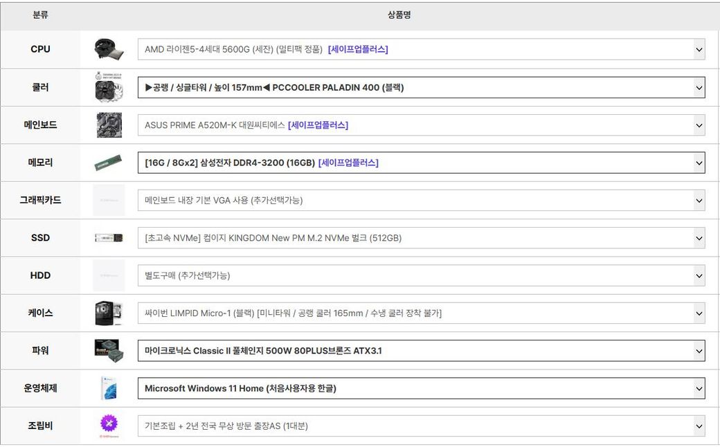 어짜피 고사양 겜이 아니라 테일즈런너 기타 알피지, 쯔꾸르 겜 한다곤 하는데 그래도 준수하게 맞춰 주고 싶어서 해봤는데 준수한 정도면 괜찮은데 이정도면 무난 할까요? 더 추가할게 있을까요?