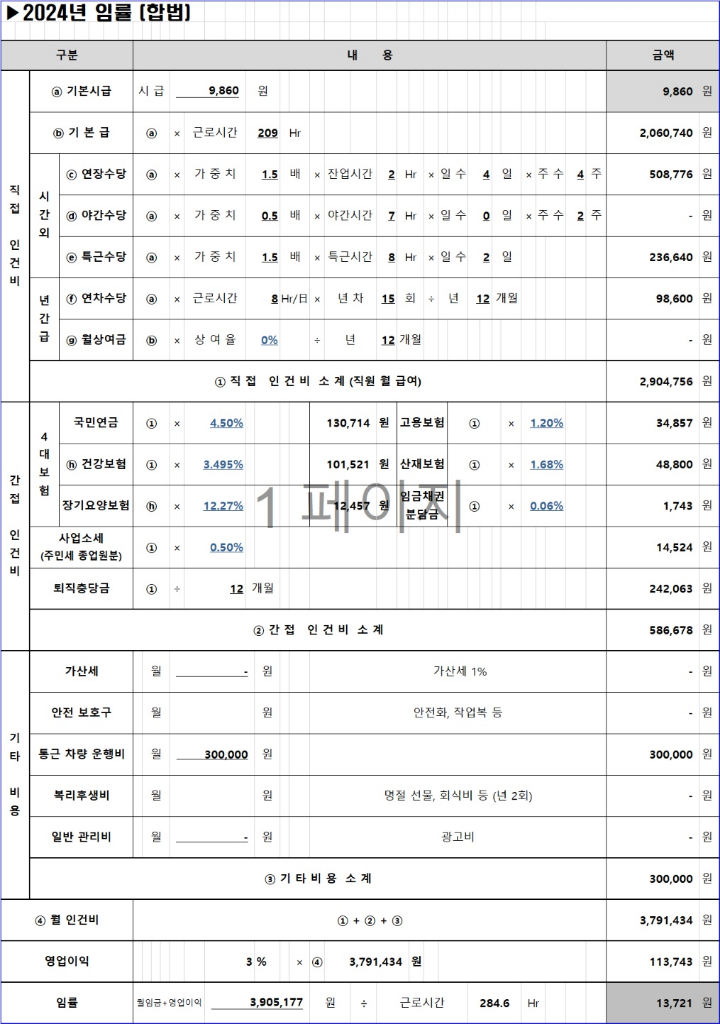이번에 용역업체 통해 채용하려고 하는데 용역업체 임율산출 내역서를 받았습니다