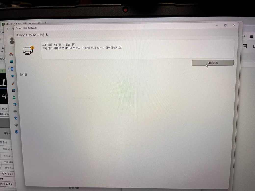 프린터 내부에서 펌웨어 업데이트가 가능하다고 해서 업데이트를 했더니 그 이후로 출력이 안되네요...