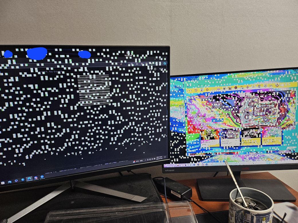 현생때문에 마지막으로 PC를 사용했던게 2주가 넘은거 같은데 부팅 끝나 마자 화면이 이렇게 변해서 멈춰버리네요.