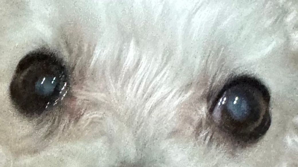사진만으로 백내장인지 확진할 수는 없지만, 말씀하신 것처럼 빛을 받을 때 더 뿌옇게 보이고 평소에는 덜 두드러져 보이는 경우라면 백내장만이 아니라 노화성 핵경화 가능성도 함께 생각해볼 수 있습니다. 핵경화는 중, 노령견에서 흔하고, 보통 양쪽 눈에 비슷하게 회청색, 푸른빛 haze처럼 보이며 시력 저하가 크지 않은 경우가 많습니다. 반면 백내장은 렌즈가 더 하얗고 불투명하게 변해 빛 통과를 방해하고 시력 저하를 일으킬 수 있습니다.