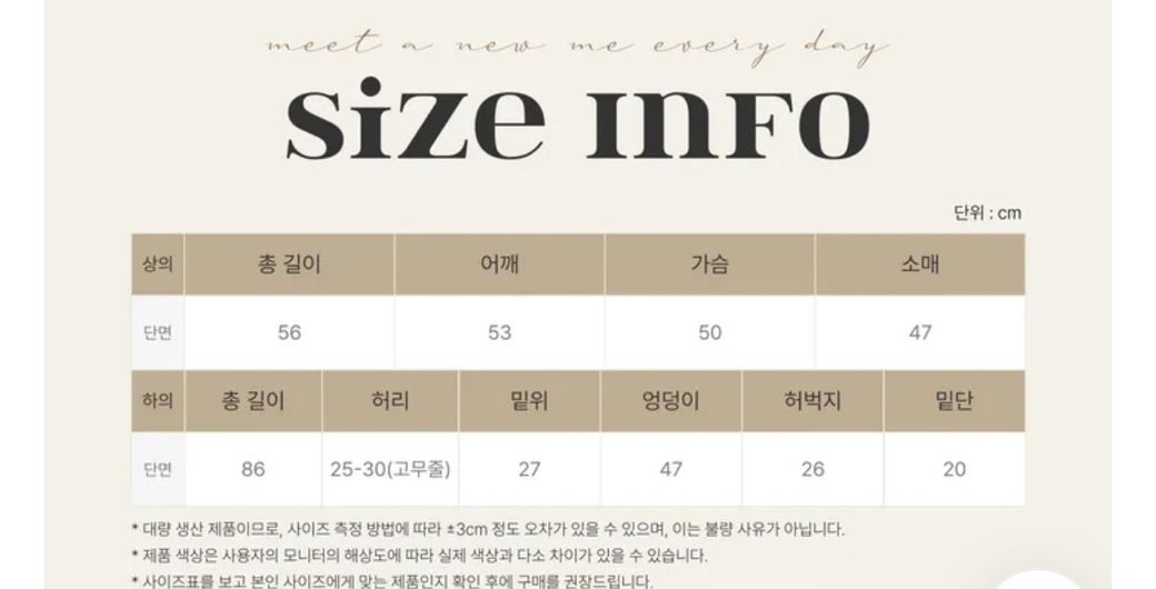 하의는 허리 고무줄로 25부터 30까지 커버된다고 써 있어서요.보통 55나 55반 입는 체형이면 무난하게 잘 맞을 것 같아요
