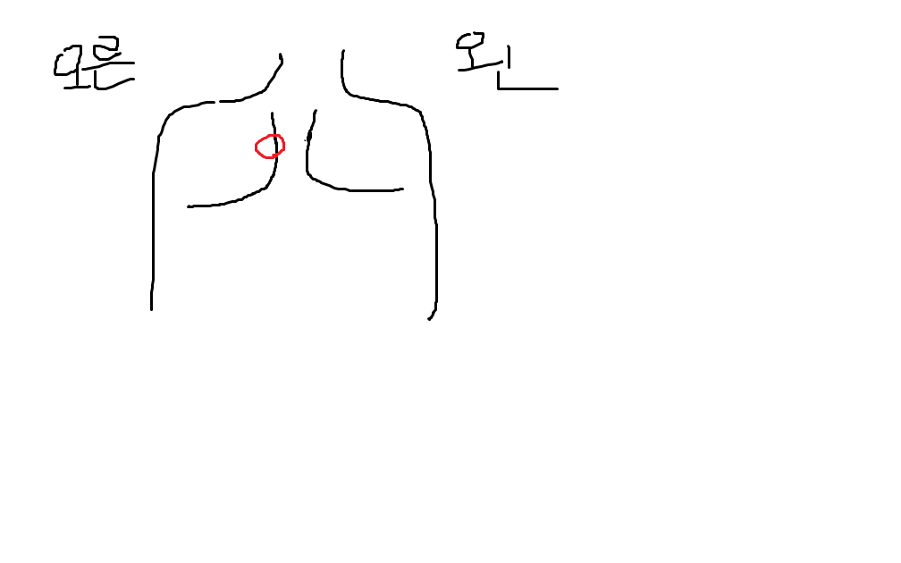 누르면 통증이 있습니다. 왼쪽 가슴 아래쪽도 누르면 통증이 있긴 한데 튀어나오진 않았습니다.