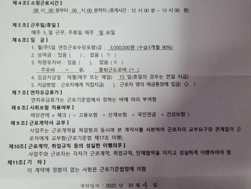근로계약서와 급여명세서 첨부합니다. 도와주세요.
