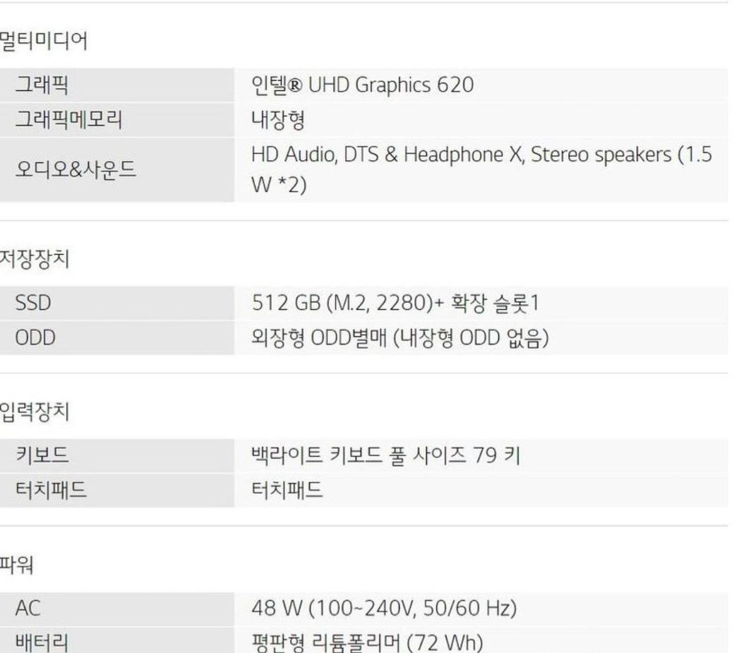 산지 몇년된 노트북 사양이 어느정도인지 궁금합니다.