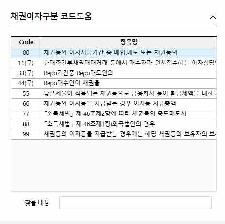 이자소득자료입력의 채권이자구분 문의