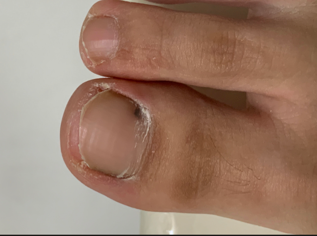 발톱밑에 발생항 출혈입니다.