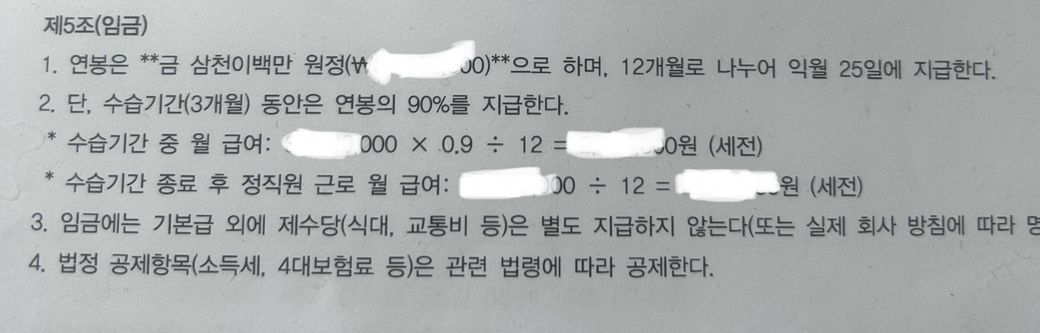 연봉(근로)계약서 내용을 정리하면