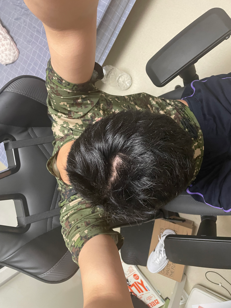 사진상으로는 정확하게 탈모다 아니다를 판단하기는 어렵지만, 뒷머리에 비해 정수리에 위치한 모발이 가늘어졌거나 과거에 비해 비쳐 보이는 두피의 범위가 점점 넓어진다고 생각되시면 탈모가 진행되고 있을 가능성이 높습니다. 가르마의 범위가 넓어서 탈모처럼 두피가 비쳐 보일 수도 있지만, 정확한 확인은 가까운 의료기관에서 진단 받아보시는 것이 좋겠습니다.
