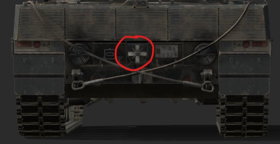 레오파르트 2a6나 아리에테 후미에 있는 하얀색 십자가에 x자 막대기로 덮여있는데 무엇인지 궁금합니다.