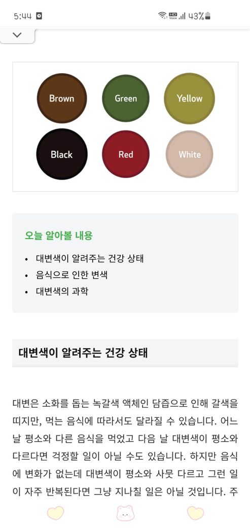 대만 여행 갔었는데 변 색깔이 바뀌었어요 제가 22일 밤에 대만 갔다가 어제 밤에 한국에 왔거든요 근데 제가 대만에 있는 동안 변을 3번을 봤어요 근데 3번 다