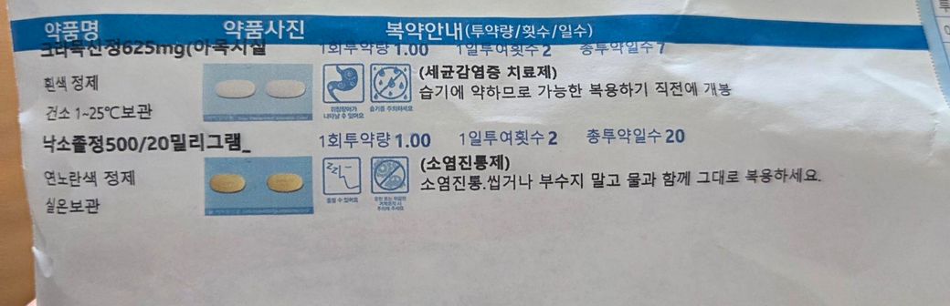 처방전엔 없지만 (두번째 사진) 얼마전 다른 병원에서 처방 받은 위장약 같이 먹어도 될까요?