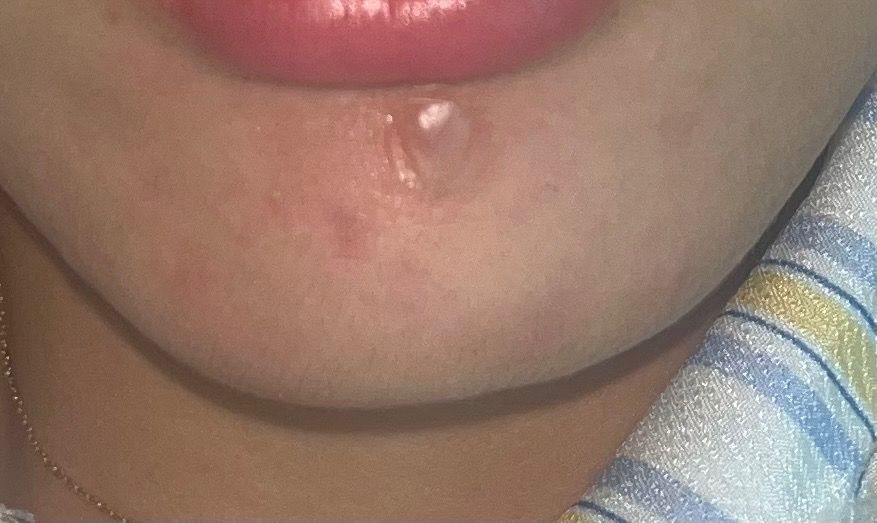 사진기준 원래는 왼쪽턱이 더 짧았는데 크게 부은 후에는 왼쪽턱이 더 긴 모습입니다.