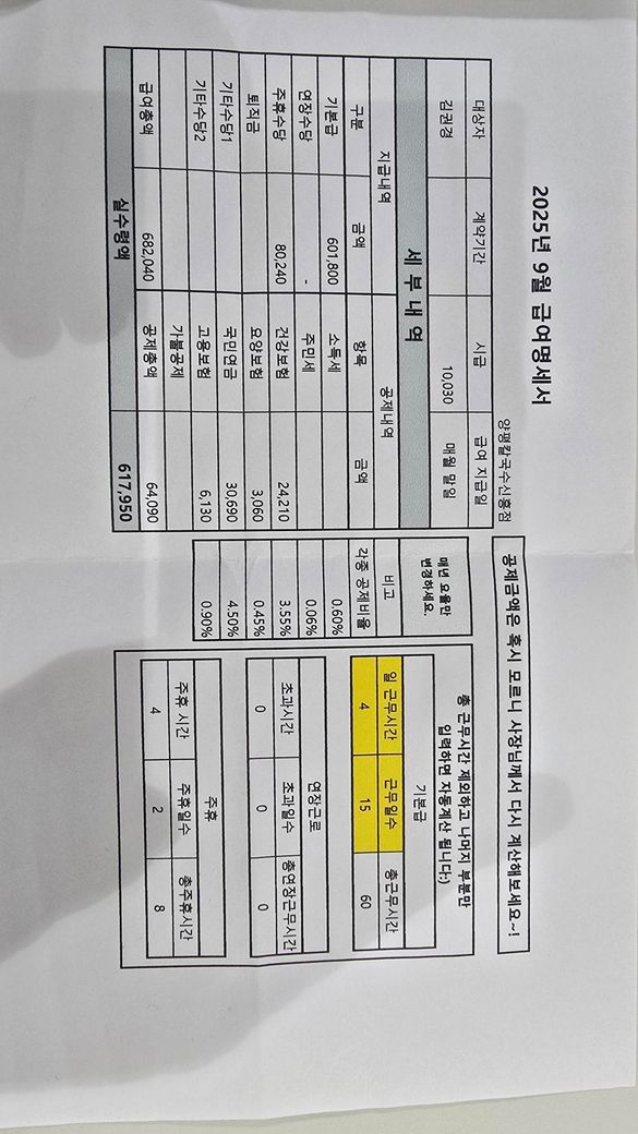 공제비율이 아르바이트인데 이렇게 책정되는게 맞나요?