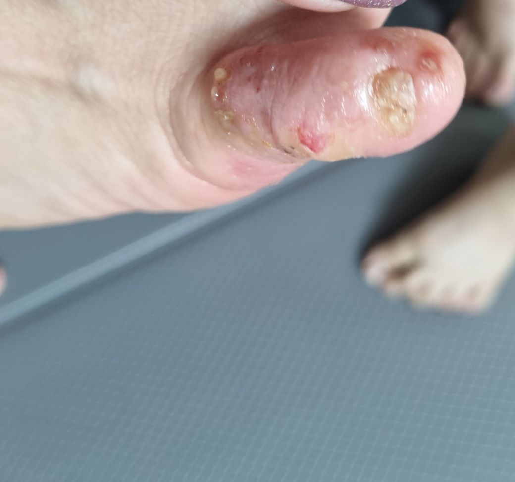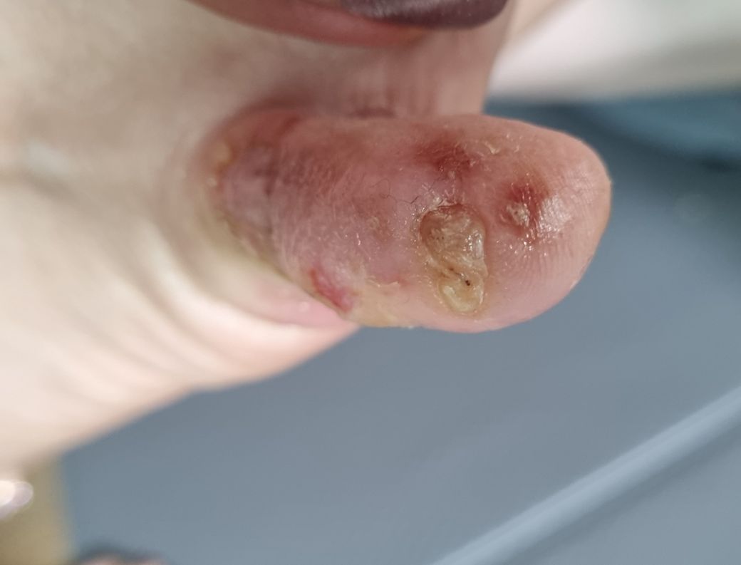 질문하신 내용에 대하여 아래와 같이 답변 드립니다.동상으로 오랫동안 치료가 잘 되지 않고 있네요. 발가락 끝의 경우 말초중의 말초인데다가 위생관리도 어려워서 감염 및 괴사가 잘 일어나는 부분입니다. 특히나 당뇨가 있다면 지속적으로 치료되지 않다가 골감염으로 이어져서 잘라내어야 하는 경우도 생깁니다. 지속적으로 치료가 잘 되지 않는다면 고압산소 요법을 실시 해 볼 수 있겠습니다.