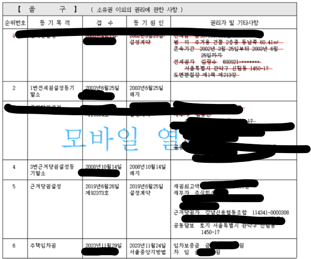 이후에 또 내용을 보니 이전 세입자의 전세금을 못돌려줬는지 주택임차권도 생긴상태입니다.