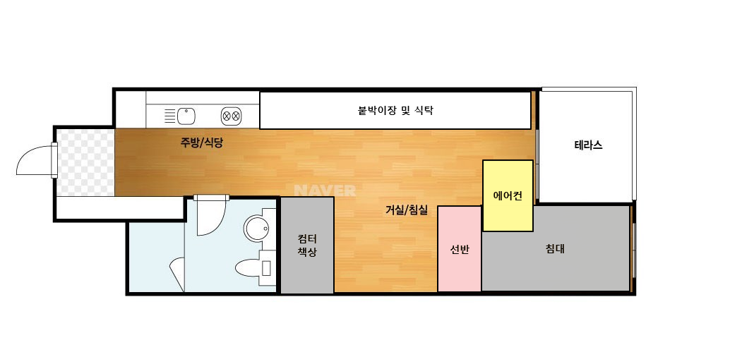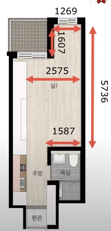 특이한 구조의 전용면적 24m2 오피스텔 가구 배치 어떻게 해야될까요?