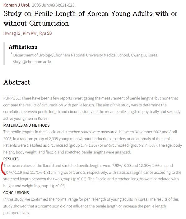 Study on Penile Length of Korean Young Adults with or without Circumcision