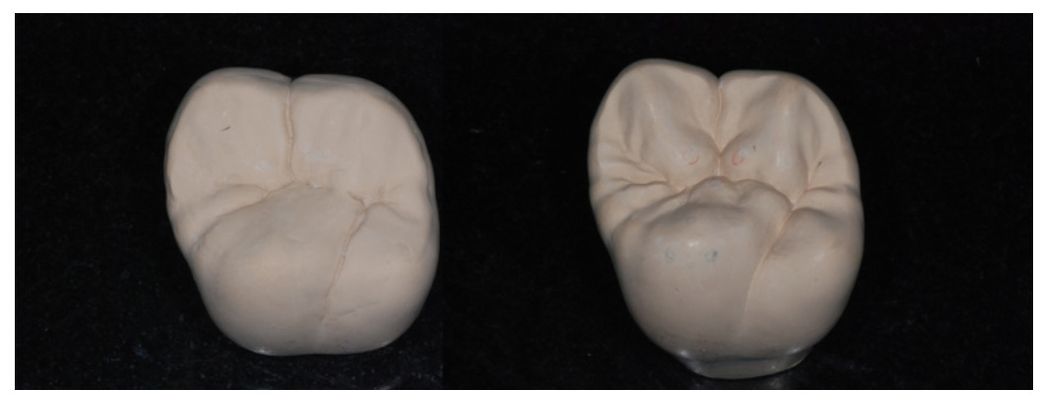 오른쪽은 주름진 부분이 윗니와 맞물리지 않아서 오히려 딱 포인트 부분만 닿고 넓은 교합 면적이 안나올것 같아요.