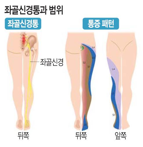 좌골신경통은 진단명이 아니라, 주로 허리에서 다리로 방사되는 신경병성 통증 증후군을 의미합니다. 가장 흔한 원인은 요추 추간판 탈출이지만, 반드시 추간판 탈출이 있어야만 좌골신경통이 발생하는 것은 아닙니다.