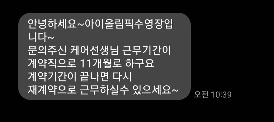 물론 재계약으로 11개월 이후에도 계속근무를 할수도 있지만 회사에서 재계약을 하지 않을수도 있습니다. 감사합니다.