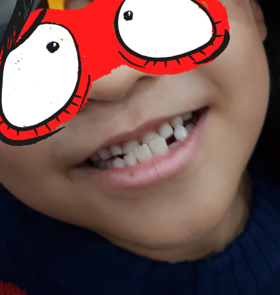 사진으로만 봤을 경우에는 위의 앞니와 아래 앞니가 반대로 물려 있는 것처럼 보입니다.