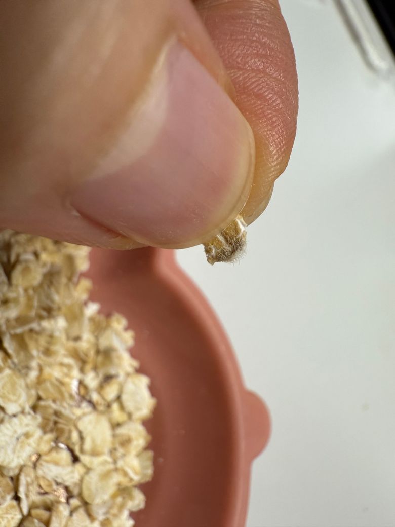 포리지오트밀에 자세히 보니까 솜털같이 있는데 곡실껍질에서 볼수있는 자연스러운건지…? 저는 곰팡이 의심을 하는데 새상품이기도 하고 건들여도 그대로더라구요? 아기가 먹는건데 찝찝해요