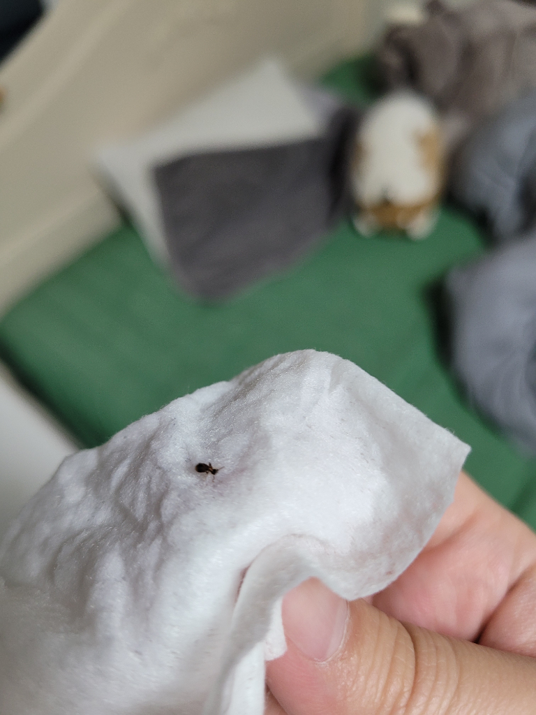 너무 작아서 잘 안보이는데, 가끔 화장실에서 보이는 집게벌레 새끼로 보이는데, 바퀴벌레는 아닌것 같습니다.
