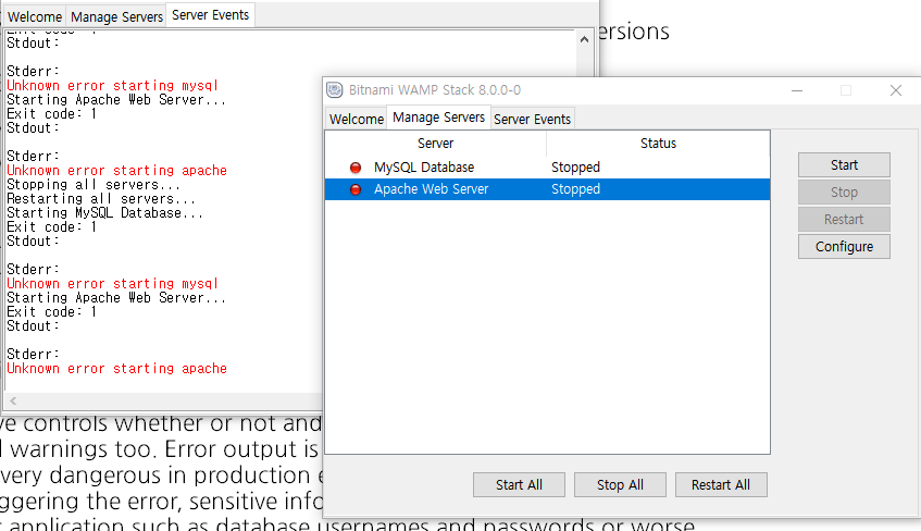 bitnami manager 오류 어떻게 해결하나요?
