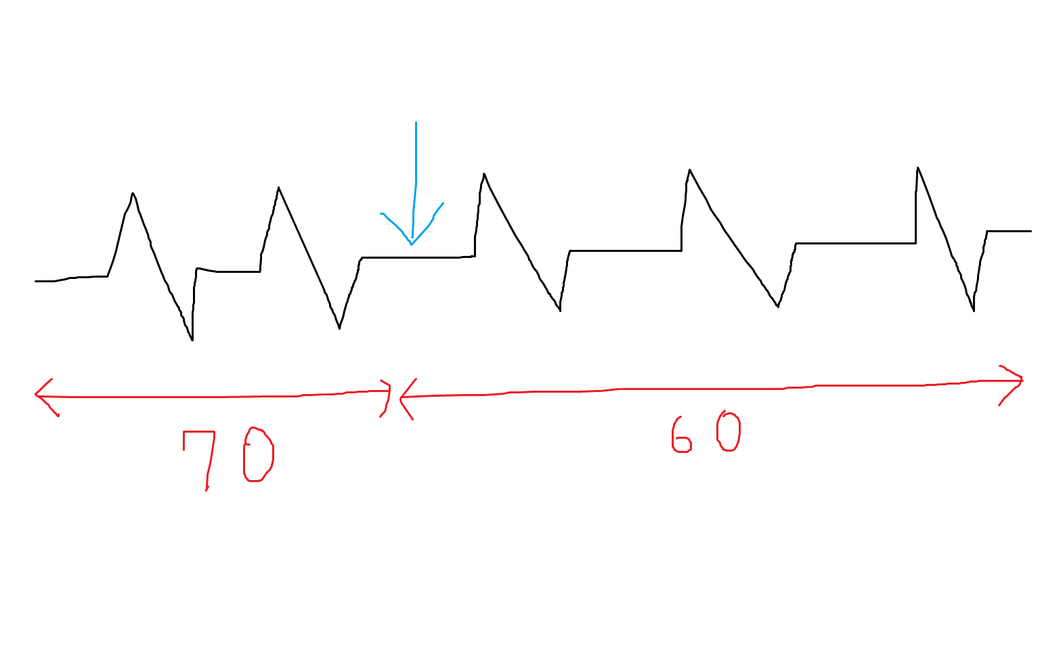 누워 있었던 당시에 맥을 한번 짚어봤는데 한 70? 정도 되는 일정한 리듬에서 좀 느려져 60 정도 되는 일정한 리듬으로 바뀌던데 저 심박수가 바뀌는 순간(파란색 화살표)에 리듬이 일정하다가 갑자기 느려지고 그 상태로 계속 일정하게 뛰는게 민감하게 느껴지는데 원래 이게 정상인가요?