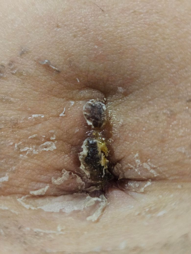 현재 사진상으로 볼 때 수술 부위가 잘 아무는 양상으로 보이지는 않습니다. 아마 복강경 접근을 배꼽 부위로 하신 것으로 보이는데, 일반적으로 수술 부위가 회복이 될 때에는 노란색 진물이 보이지 않는 것이 정상적이나 질문자님께서 올려주신 상처 부위에서는 노란색 고름이 일부 비치는 것으로 보여, 수술 받으신 병원에 가셔서 수술 부위에 대한 평가를 다시 받아보시는 것이 안전할 것으로 생각됩니다.