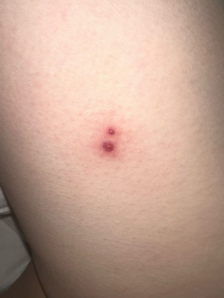 가장 흔한 가능성은 모낭염입니다. 모낭염은 모낭 주변 세균 감염으로 작은 붉은 구진이나 농포 형태로 나타나며 허벅지, 엉덩이, 겨드랑이 같은 마찰 많은 부위에서 흔합니다.