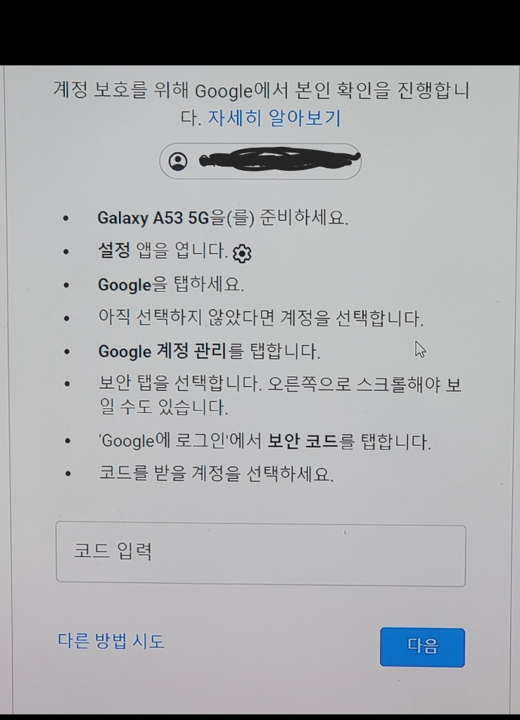 핸드폰 수리하고 구글 다시 로그인 하려고 보니까 이런증상이 나타납니다