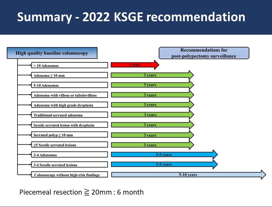 대장내시경 검사주기에 대해서는 여러 가지 이야기가 있습니다. 2022년 국내가이드라인입니다