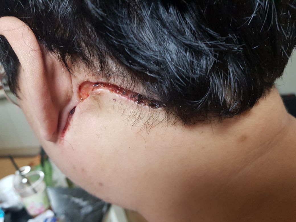 4.수술부위 본드로 해놓고 다 벌어지는데도 조치 안해주다가 2주만에 꼬매준것