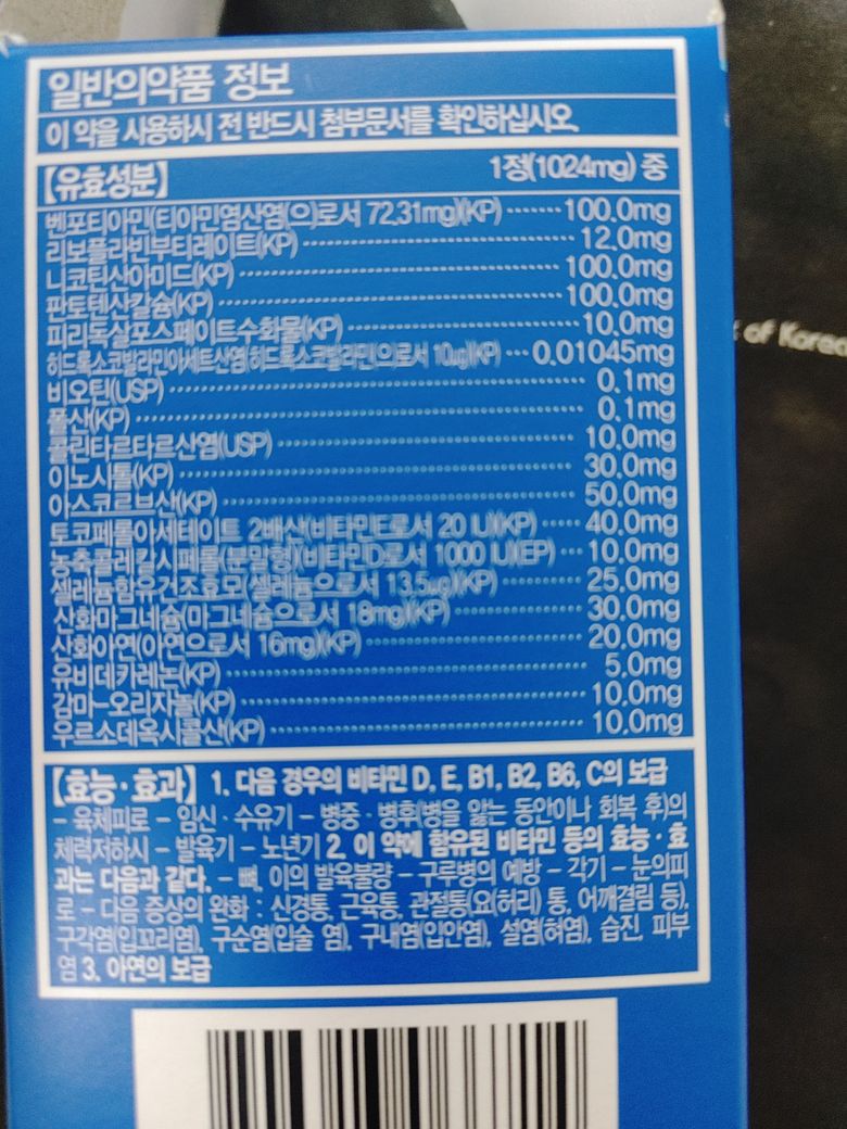 하지만 수용성으로 고함량을 먹어도 큰 문제가 안되고, 오히려 피로회복등의 효과가 있어서 많이들 드시는 약입니다.
