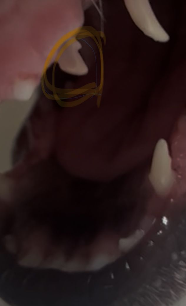 주변에 하얀 이빨과 달리 표시된 저 부분은 색깔이 왜 저럴까요? 썩은건 아니겠죠? ㅠㅠㅠㅠ 아직 5개월 정도라 이빨이 빠지고 있는 중입니다.