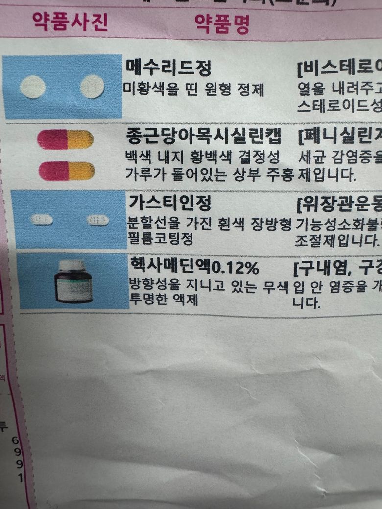 ㅇ여기 사진에 나와있는 약이랑 (치과약 입니다) 열이랑 통증이 아예 없으면 메수리드정은 안먹어도 되는지 저 치과약들이랑 같이 (소화기 ) 내과약 에스메졸정 40 스파론정 복용해도 되 는지 궁금합니다.