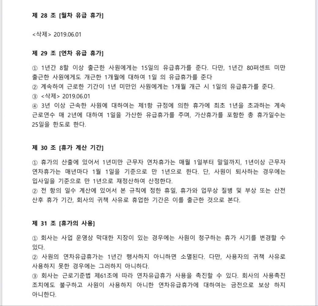 근로기준법 제60조(연차 유급휴가) ① 사용자는 1년간 80퍼센트 이상 출근한 근로자에게 15일의 유급휴가를 주어야 한다. <개정 2012. 2. 1.>