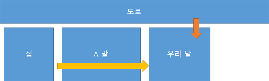 안녕하세요. 기존 집에서 우리 밭을 가기 위해서, A씨의 밭을 지나갔습니다. 하지만 어느날 A씨가 자신의 밭을 지나가지 못하게 막게 되었습니다. 그 길을 이용하지 못할 경우 밭을 가기 위해서는 도로에서 사다리를 이용하여 가야 합니다.(도로와 밭 사이 콘크리트 벽이 있음). 통행으로 인한 불편함이 초래되어 농업에 지대한 영향이 있습니다. 무거운 물건을 옮기는데는 더욱 제약이 따르고 있는 상황입니다.