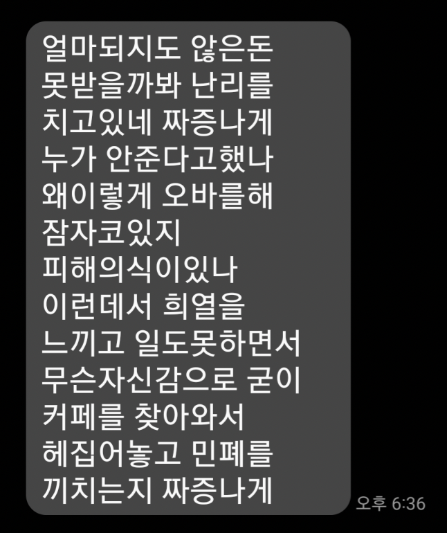 그리고나서는 사장에게 아래 사진과 같은 문자를 받았습니다.