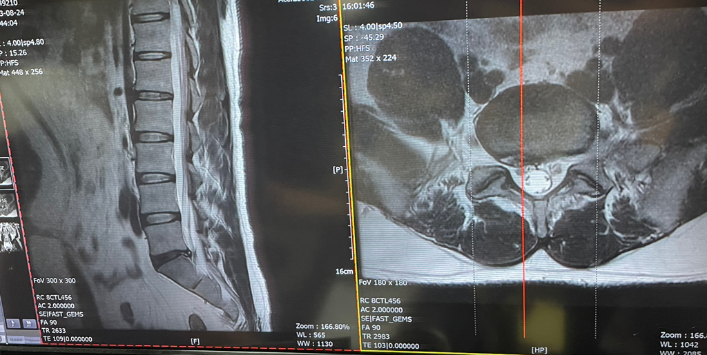 요추5-천추1번 디시크 탈출증이 관찰되며,
